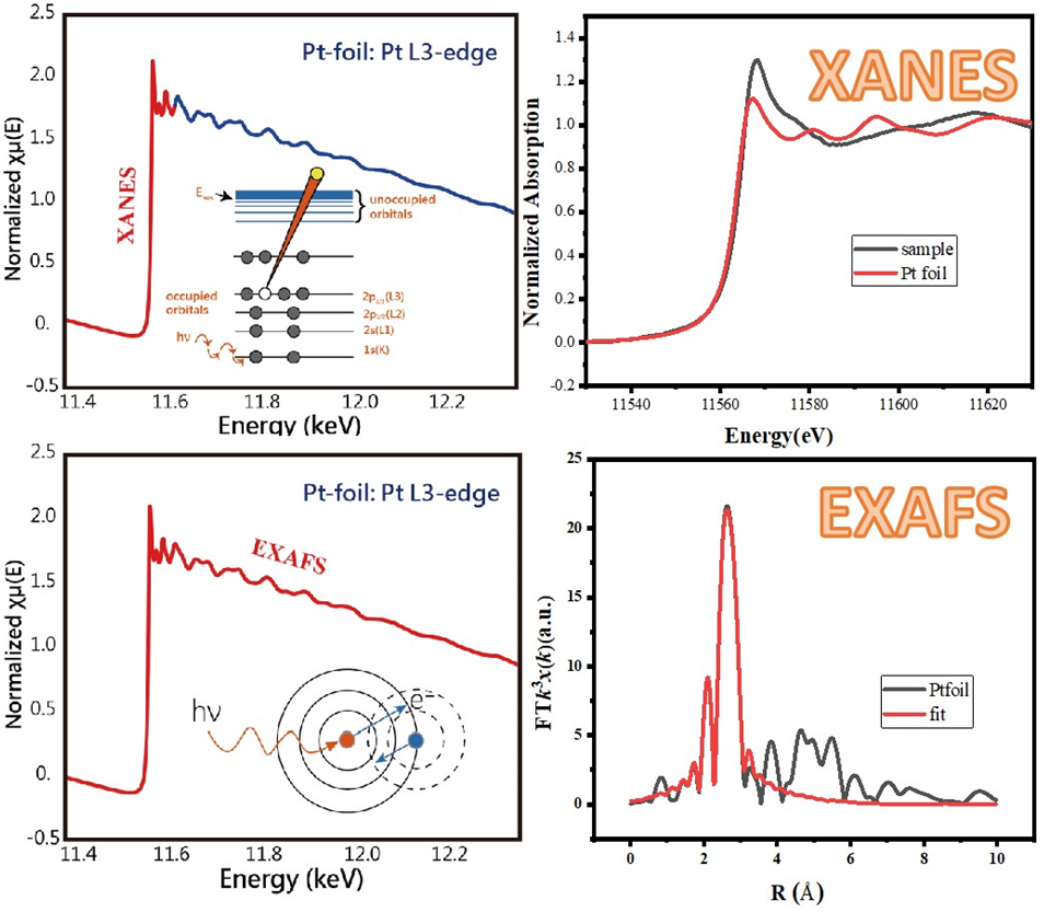同步輻射光源與傳統X光射源的最大差異為可提供能量連續且高強度的光源,同時具有極佳的偏振性。利用此特點的代表技術即為X射線吸收能譜(X-ray absorption spectroscopy: XAS),分為兩個觀測范圍:X射線近吸收邊精細結構(XANES)及延伸X射線吸收精細結構(EXAFS)。